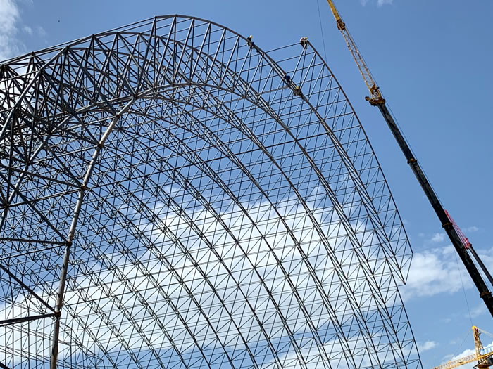 (2)网架加工前应对现场尺寸进行复测,确认无误后方可进行加工、安装;网架制作、运输、安装应遵守《空间网格结构技术规程》JGJ7-2010、《钢网架邹城螺栓球节点》JG/T 10-2009、《钢网架邹城螺栓球节点用高强度螺栓》 GB/T 16939-2016、《钢结构邹城工程邹城施工规范》 GB50755-2012、《钢结构邹城工程施工质量验收标准》 GB50205-2020。